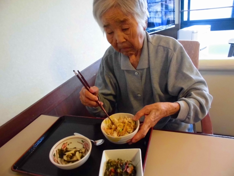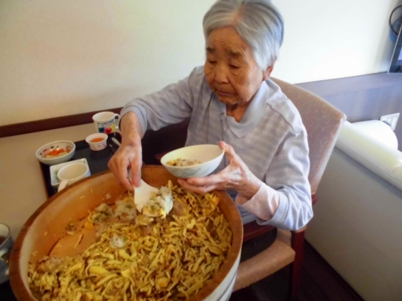 昼食の『ちらし寿司』を自分が食べたい量だけお椀に入れて頂き、召し上がって頂きました。