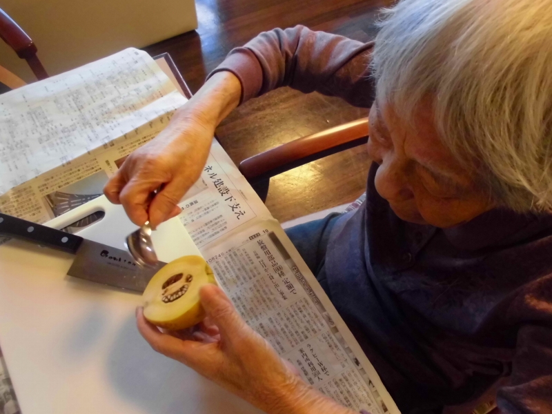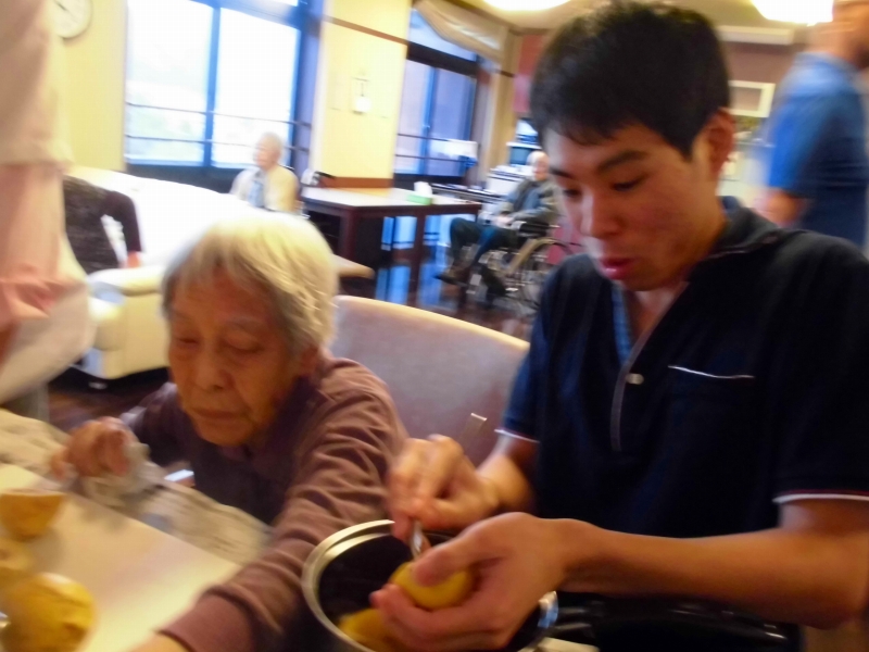職員と一緒に『カリン』の種だし・・・(〃ゝω')b