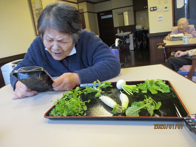 「これは何の葉っぱやろ~」「昔、お粥作ったわ~」と会話が弾みました!