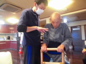 手すりを持って立つ練習を頑張って(〃ゝω')b