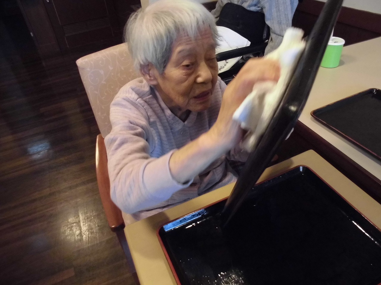 お膳拭きをして頂きました。