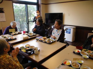 皆様とお祝い(#^^#)。昼食は誕生日食の『ちらし寿司』(*‘ω‘ *)