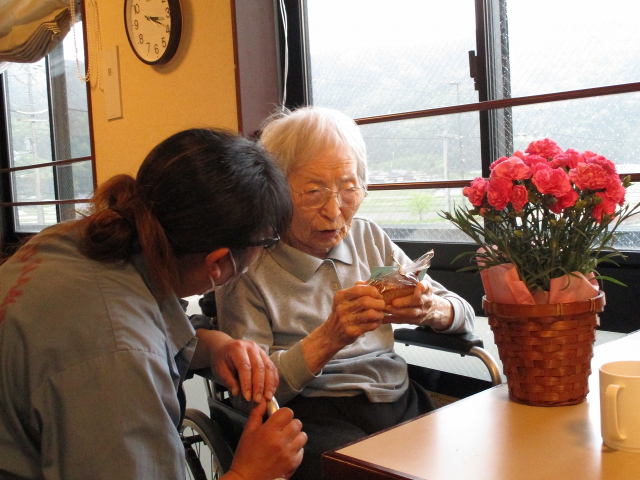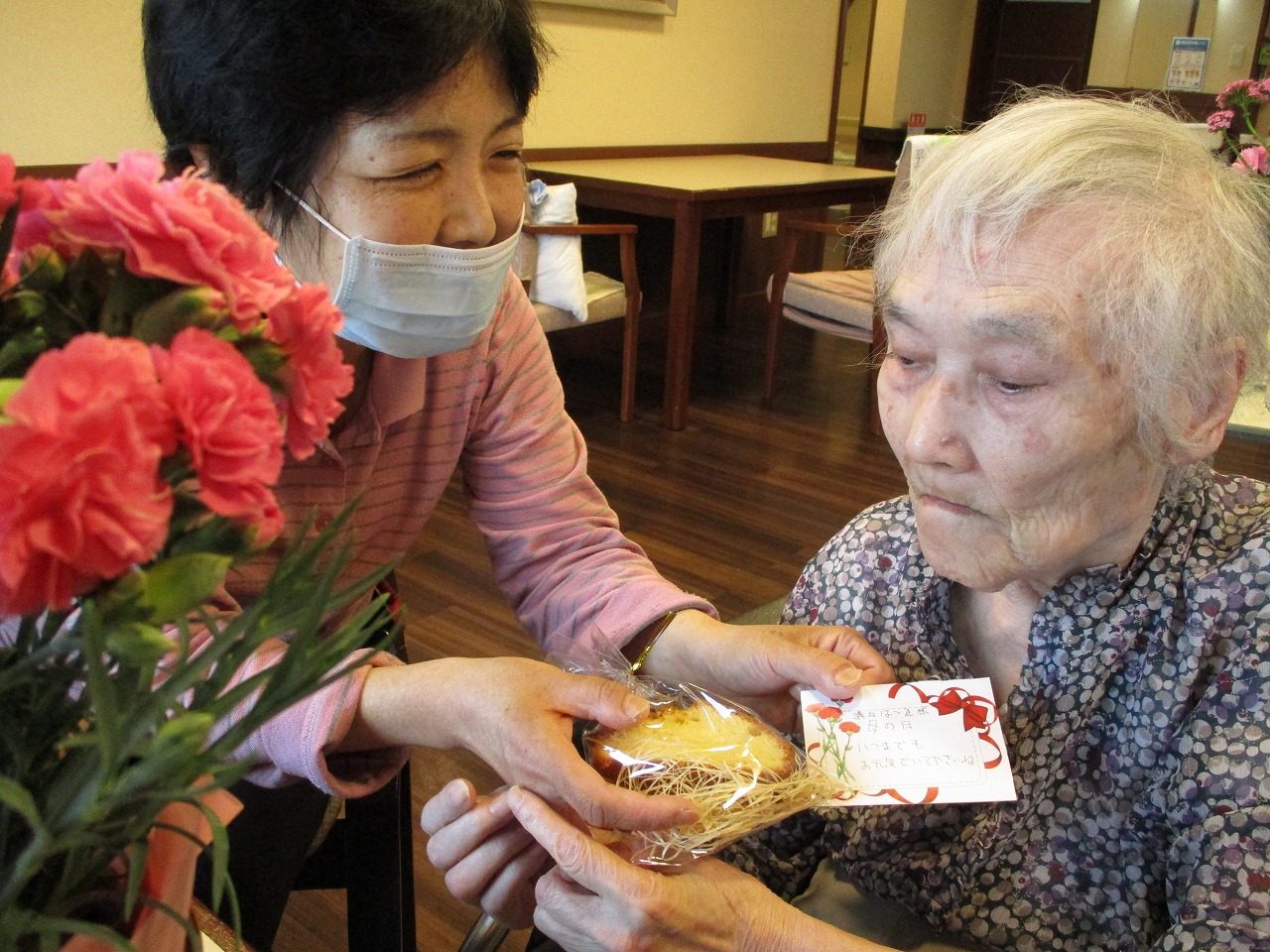 職員からのメッセージカードを渡しました。