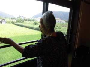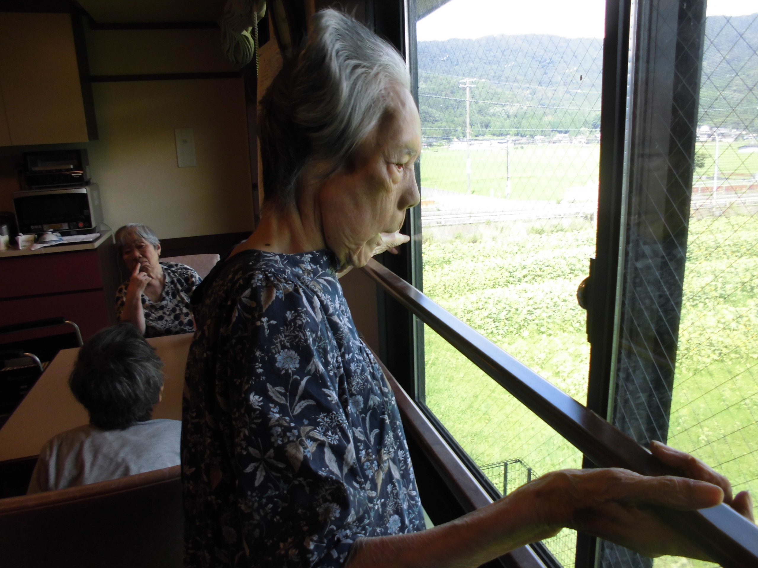 施設2階からの風景を・・・。綺麗なひまわりが見えていますね。
