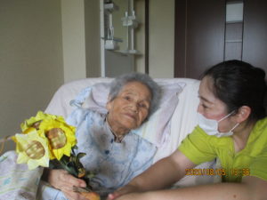 職員の心こもった手作りの向日葵です。笑顔がとっても素敵ですね♪