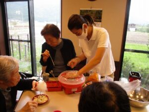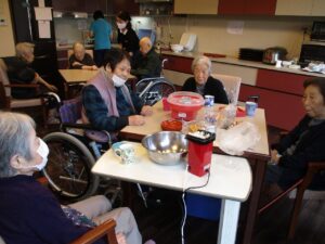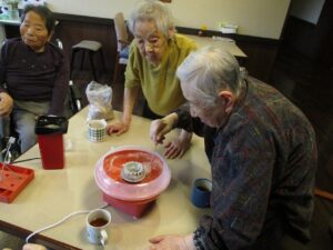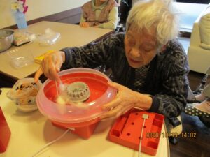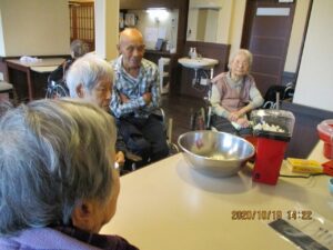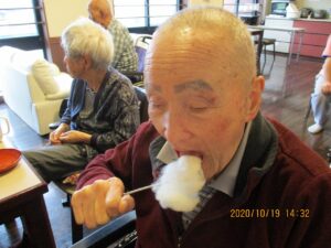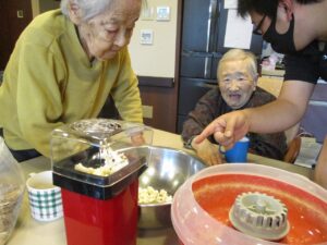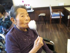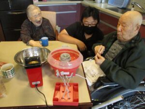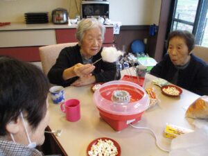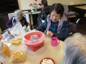 秋のごちそう昼食会後にみんなでポップコーンと綿菓子を作って頂きました♪