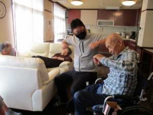 座りながら気軽にできる体操が行われていますので、安心して体を動かす事が出来ました(^^)/