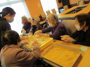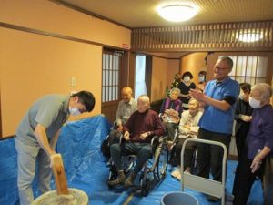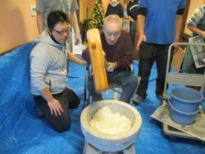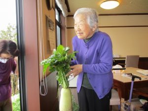 一丁目のリビング前で育てた大根も大根おろしにしてお餅を頂きました。