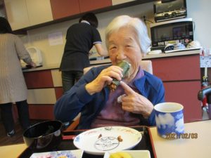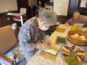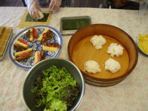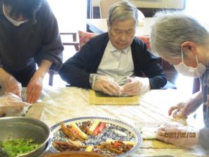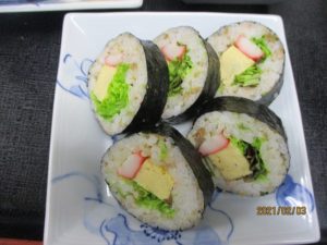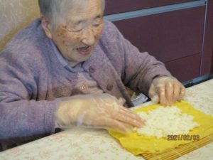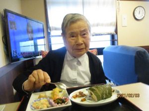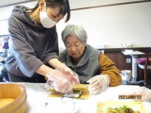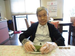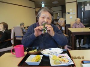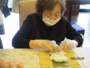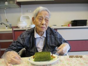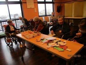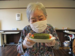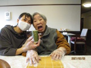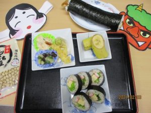 今年の節分は2月2日でしたが、1日遅れで太巻き作りと豆まきを行いました♪