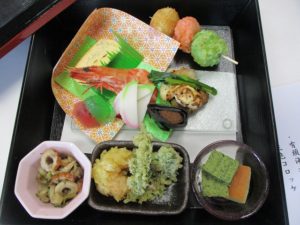 うどのきんぴら、こごみの天ぷら、よもぎのケーキなど春を感じるお弁当でした♪