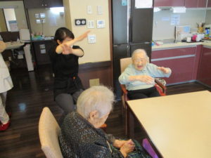 職員と一緒に身体を。