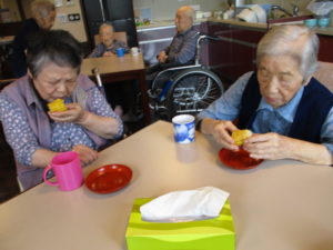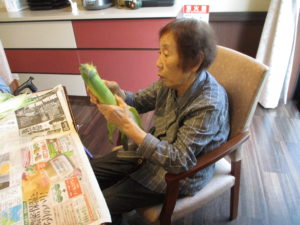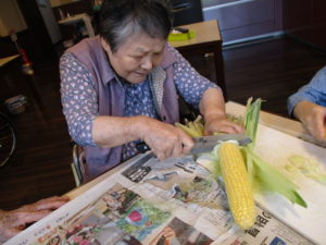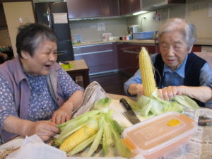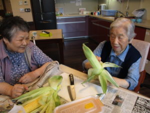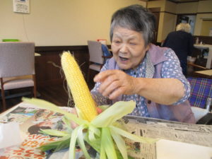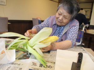 今日はおやつに「とうもろこし」を蒸して頂きました。