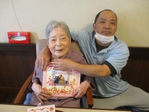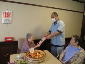 今日は入居者様のお誕生日会をし、お昼はちらし寿司を食べました。