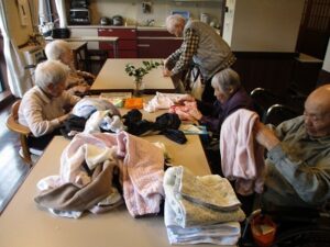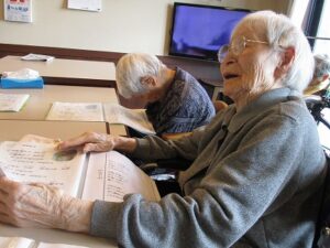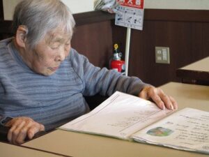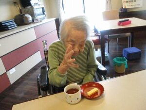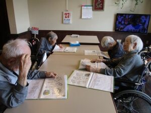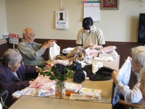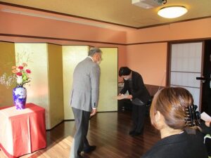 リビングで職員と。