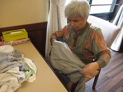 今日は湿度が高くジメジメしていますが、一生懸命に洗濯物を畳んで下さっています(^^)/
