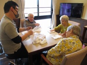 お話をしながら、いつものように洗濯物をたたんでくださいます。