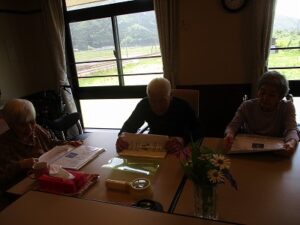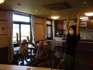 皆さんで歌を唄ったり、テレビ体操をしたりしてお過ごしでした。