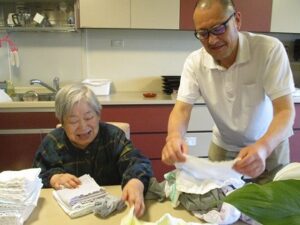 お茶のパック詰め、お膳拭き、洗濯物たたみなど