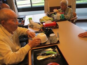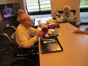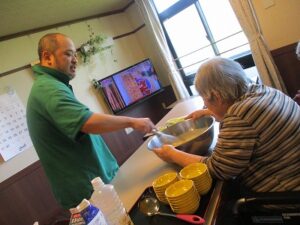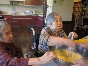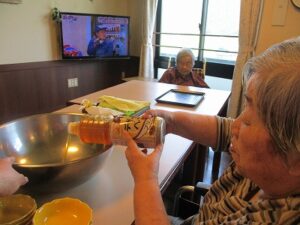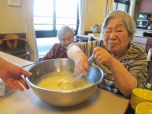 利用者様のご協力でケーキが完成しました。美味しそうです。
