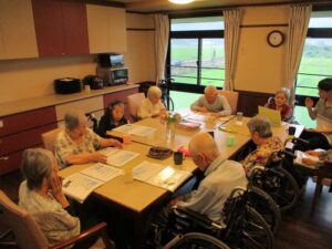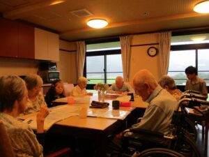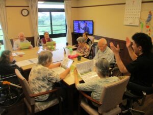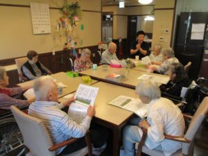 リビングにて皆で楽しく歌って過ごされてました。笑う。