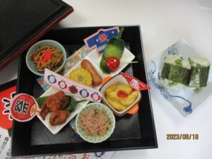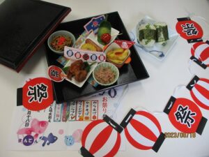 今日の昼食はお祭りにちなんだメニューのお弁当でした♪