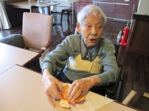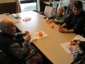 冬といえば・・みかんですよね。本日は皆さんで美味しいみかんを頂きました。