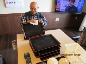 今では日課となっているお膳拭きやお椀拭き、洗濯物たたみなど・・・