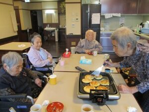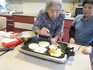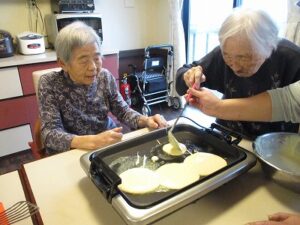 今日は、15時に皆さんと一緒におやつ作りを行い、一緒に食べました^^