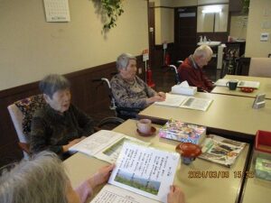 本日の歌会の様子です。外は⛄が降り寒むですが、ユニットでは楽しい歌声が響いていました。
