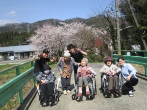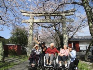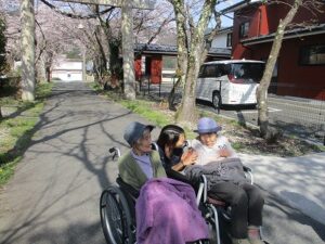 施設の前にも沢山の桜が咲き、お天気にも恵まれたので