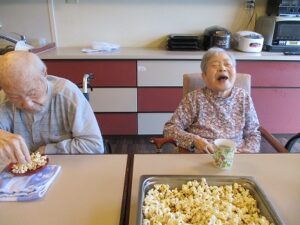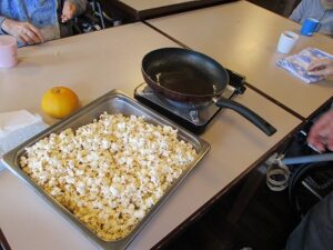 おやつの時間、出来立てのポップコーンを頂きました♪