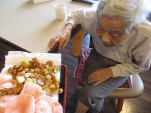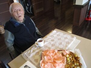 おやつの時間に揚げせんべいとジャガイモの素揚げを頂きました♪