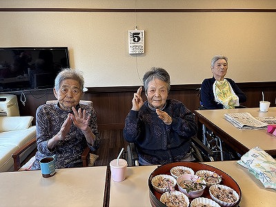 皆さんでお祝いをさせて頂き、美味しいお赤飯を食べました。