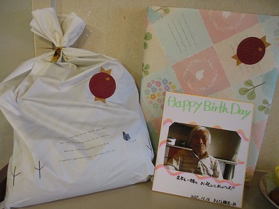 家族様からのプレゼントと特製ケーキ、色紙、誕生日の歌でお祝いさせて頂きました!