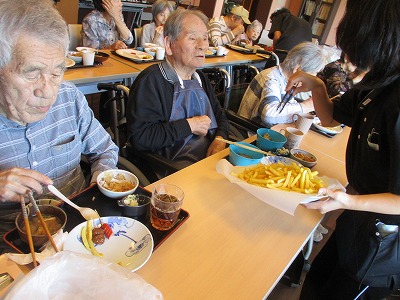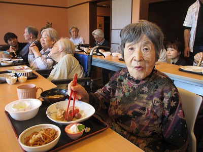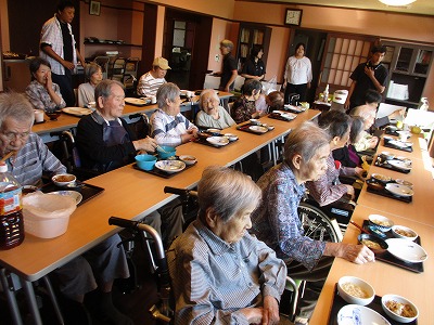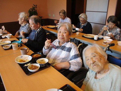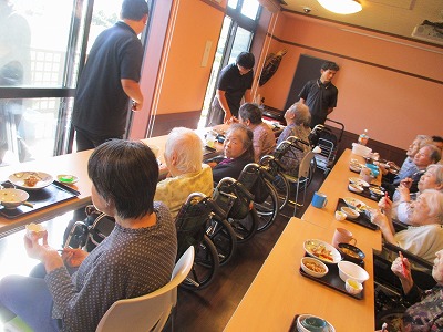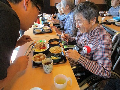 利用者様、グループホームの方々も一緒に楽しく食事を召し上がられ、皆さんも笑顔で過ごされた。