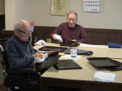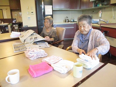 新聞折りや洗濯物たたみ、お膳拭きをして下さいました^^