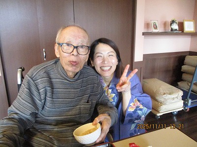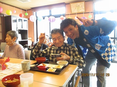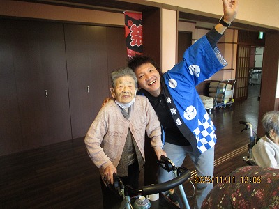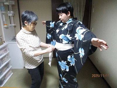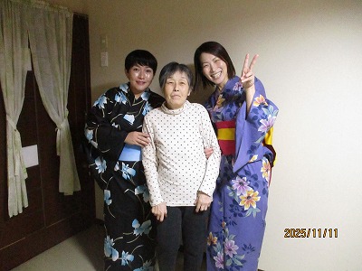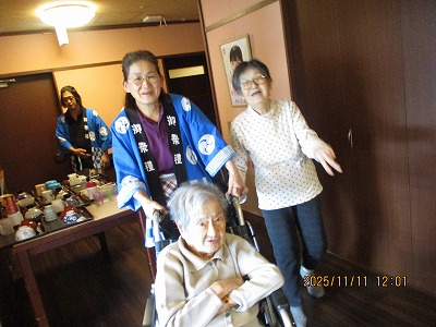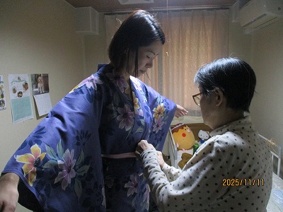 ★祭りの前には、入居者様が職員の浴衣の着付けをして下さいました!