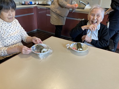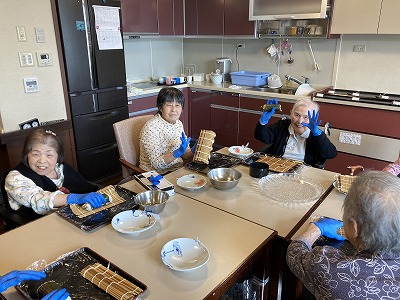 皆さん笑顔で一緒に巻き寿司を作って下さりました。