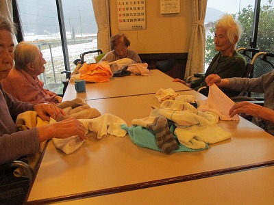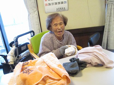 本日、利用者様と洗濯物を一緒に畳み、歌を歌いました。