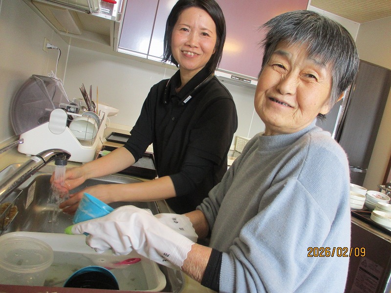 職員と洗い物を洗いました。:)良い笑顔を
