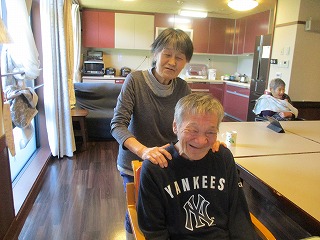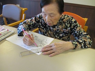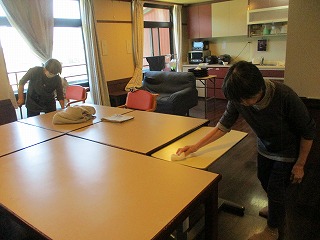 一緒にテーブル拭きや塗り絵など様々な活動を