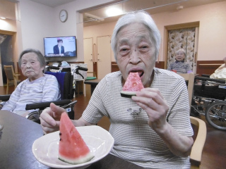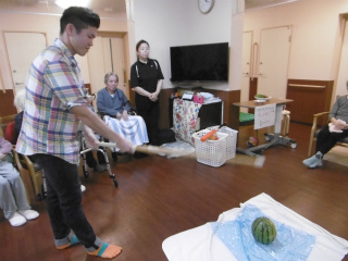 先日利用者様達とスイカ割りを楽しみました(^^♪