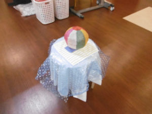 先ずはスイカに見立てた紙風船を割って頂くことに‥