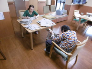 新聞を折ってくださったり、洗濯物を畳んでかたずけをしてくださいます。