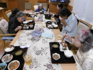 テーブルを拭き夕食の準備を皆さんでしてくださいます。