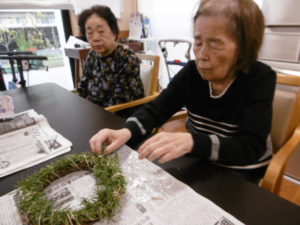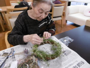 クリスマスのリースを作りました。