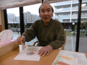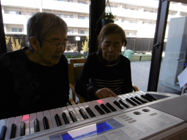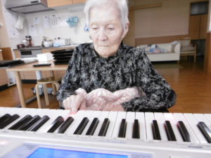 塗り絵をされたり、ピアノを弾かれたリされ、楽しんでいらっしゃいます。