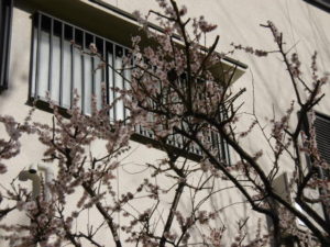 今日は暖かい日で、久しぶりのお散歩です。少し早めの桜が咲いていました。