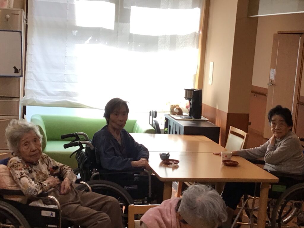 家族様から送られてきた果物やお菓子を美味しそうに食べておられました。皆様ゆっくりと過ごされておられました。