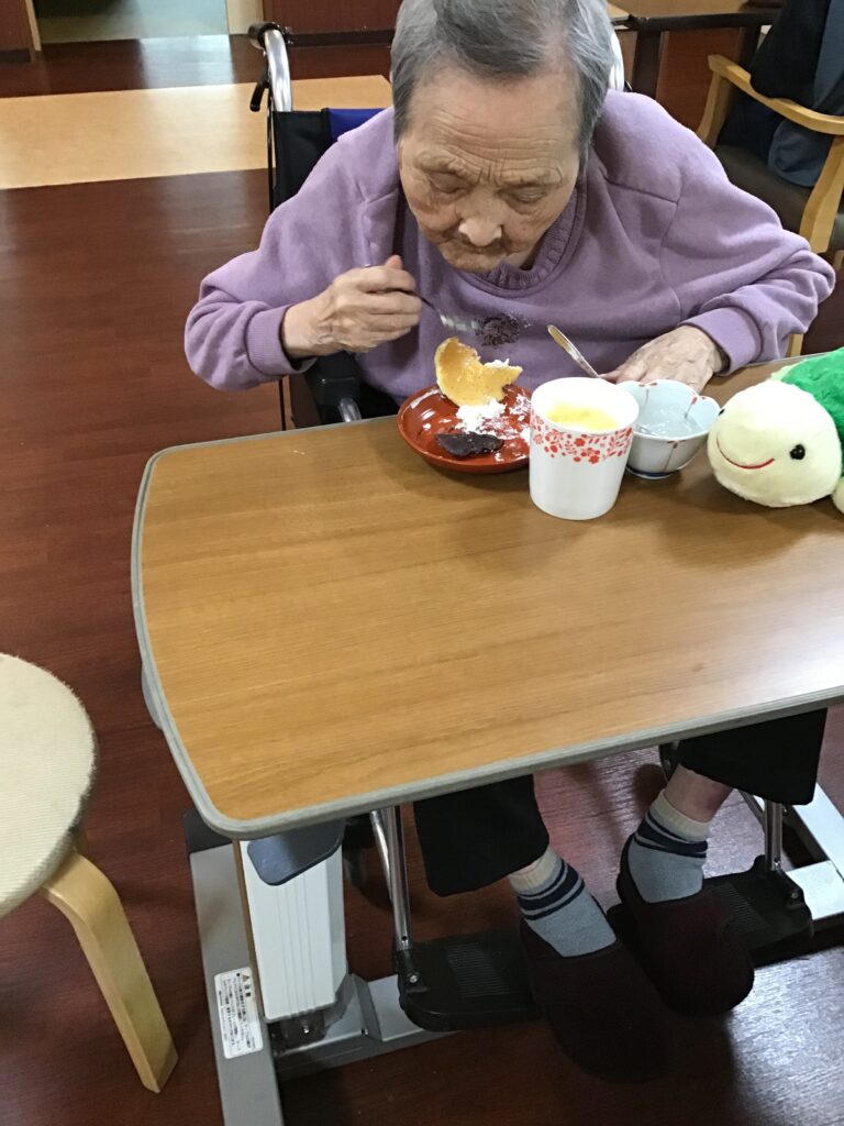 ケーキを美味しくいただいていました。
